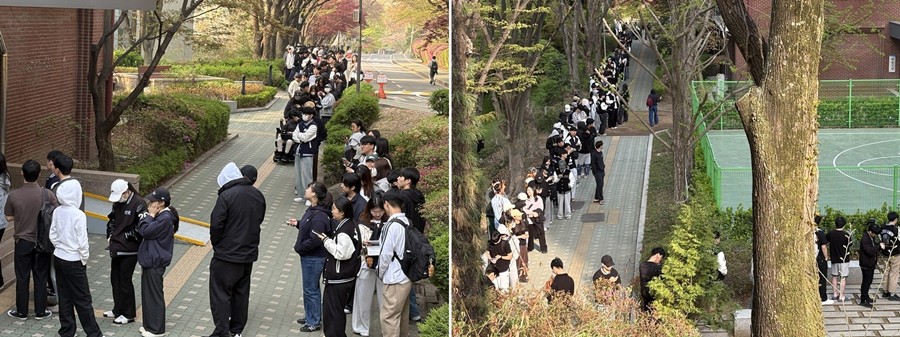 (사진) 천원의 아침밥이 제공되는 기숙사 식당 동서측 입구 양쪽으로 긴 줄이 형성됐다.