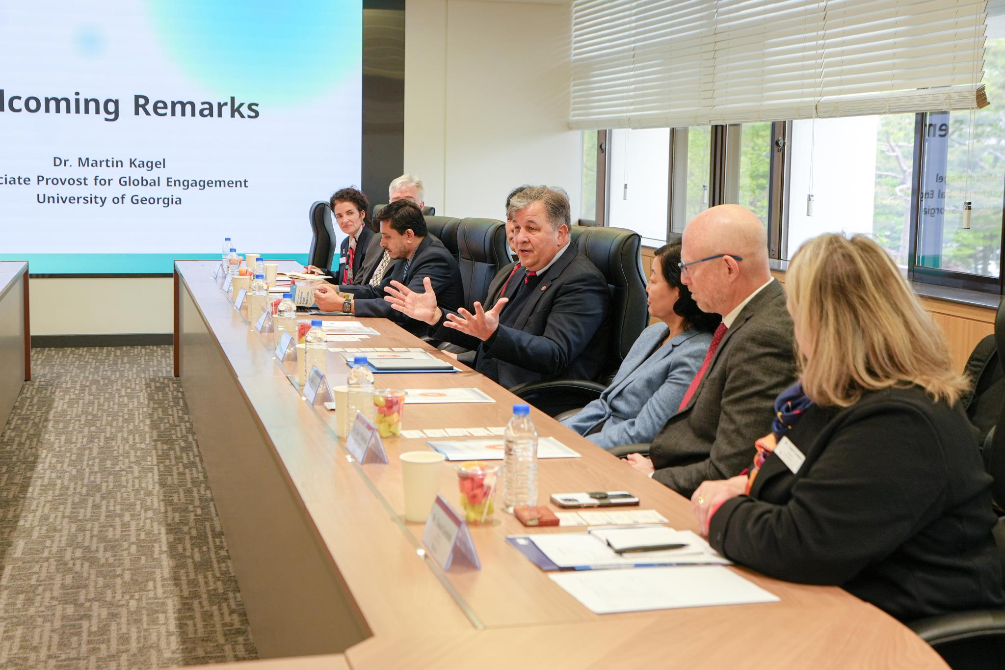 미국 조지아대학(University of Georgia, UGA) 방문단은 22일 우리 학교를 방문했다. 국제교류 부총장인 마틴 케이글(Martin Kagel) 교수를 비롯한 8인의 조지아대 방문단은 우리 학교 김태봉 국제협력처장을 비롯한 교수진과 환담을 나눴다.