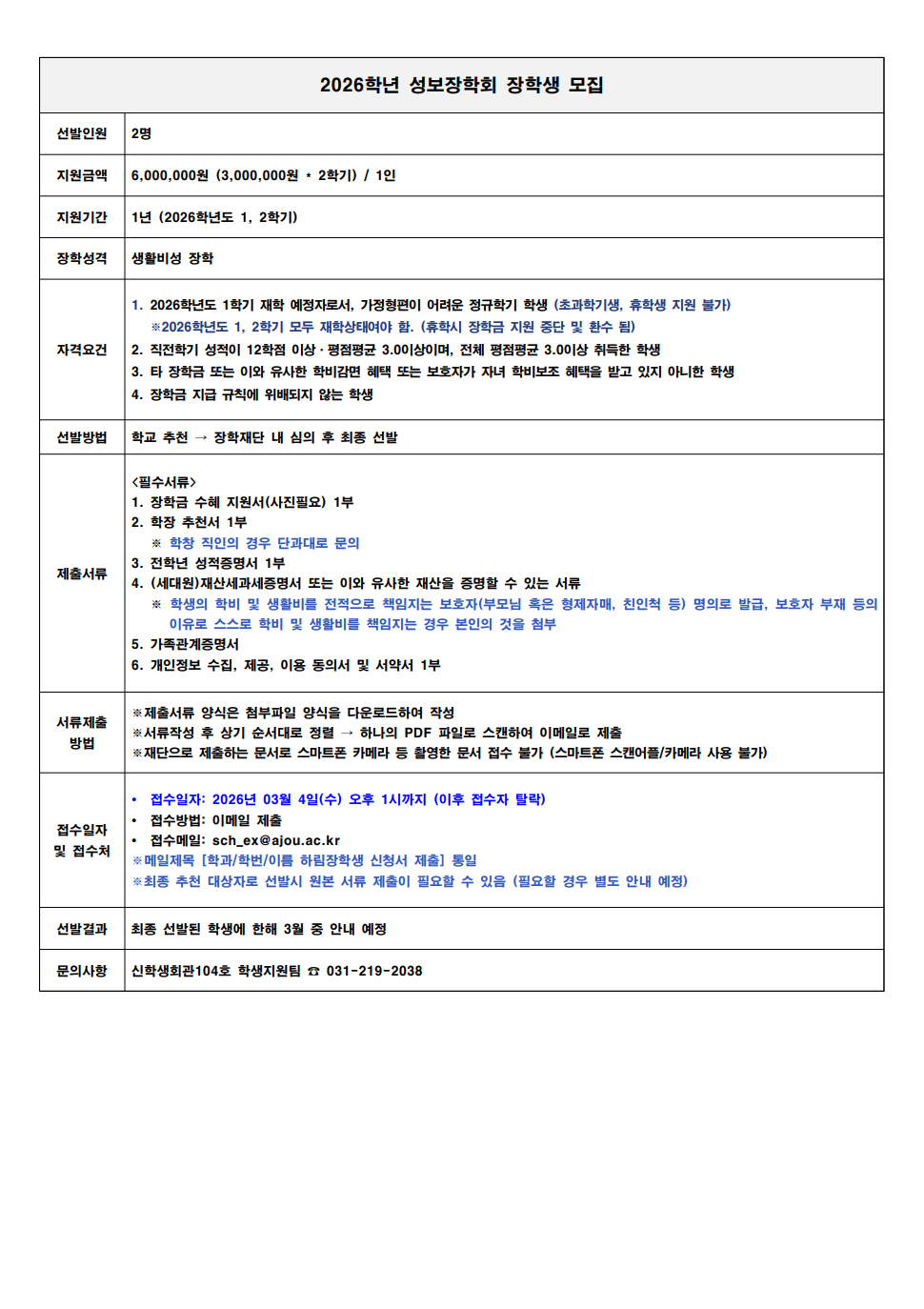 [장학] [교외장학] 2026학년도 성보장학회 장학생 선발 공고(~03.04.(수) 오후 1시까지)