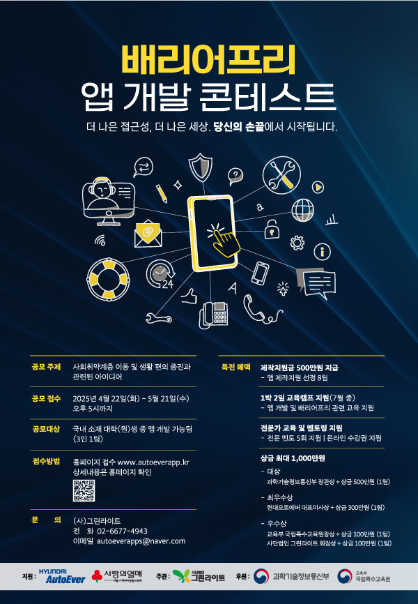 참가신청 : 배리어프리 앱개발 콘테스트 홈페이지 신청(https://www.autoeverapp.kr/)