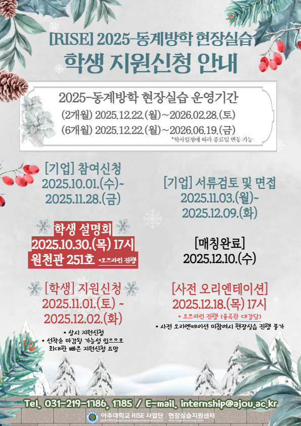 [공지][RISE] 2025-동계방학 현장실습 운영일정 안내(★학생 지원신청 11.01.(토)~)