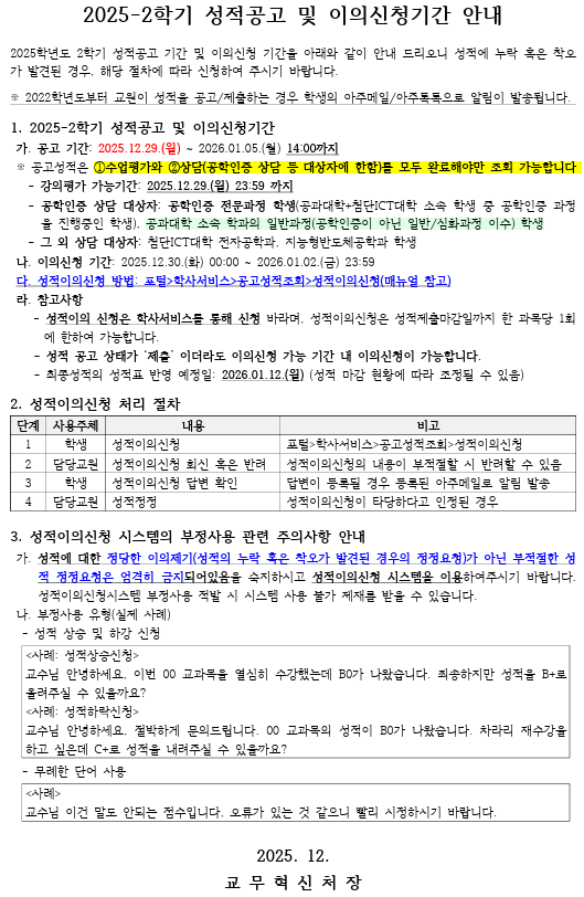 [공지] 2025-2학기 성적 관련 유의사항 안내