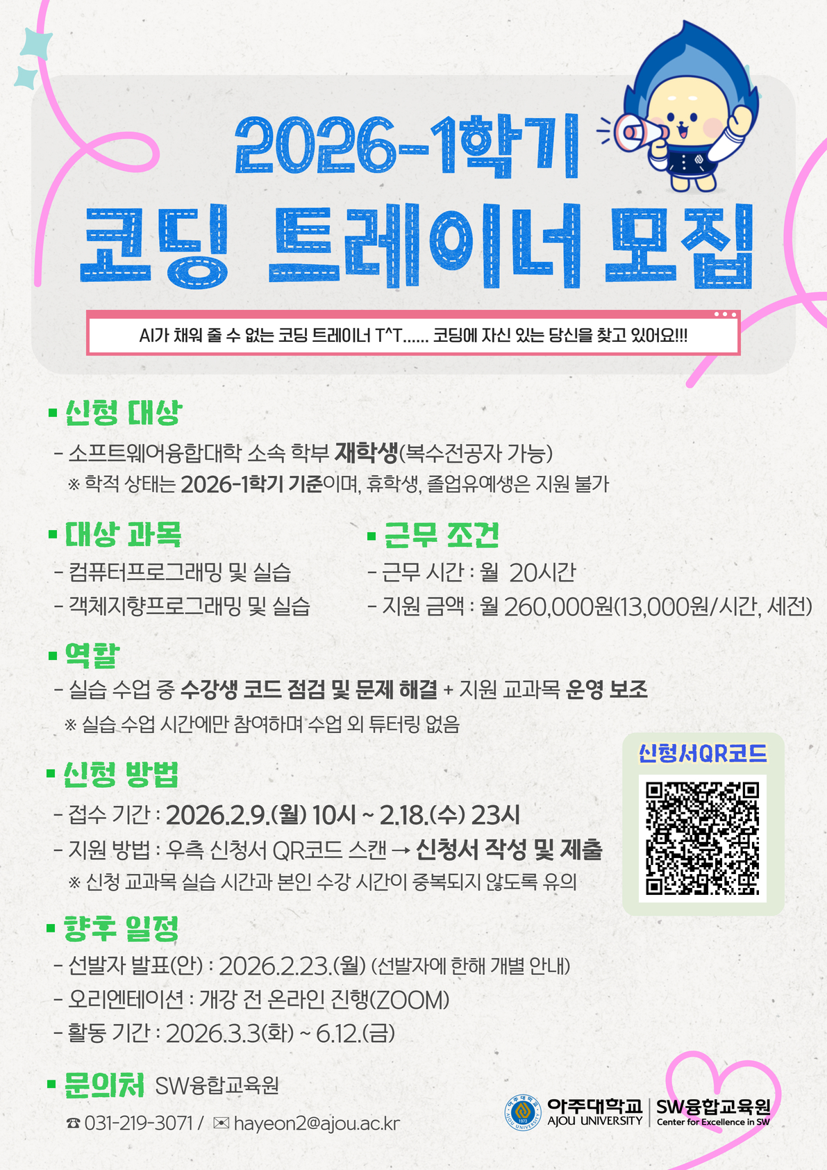 [기타] [SW중심대학] 2026-1학기 코딩 트레이너 모집 안내(2/9~2/18)