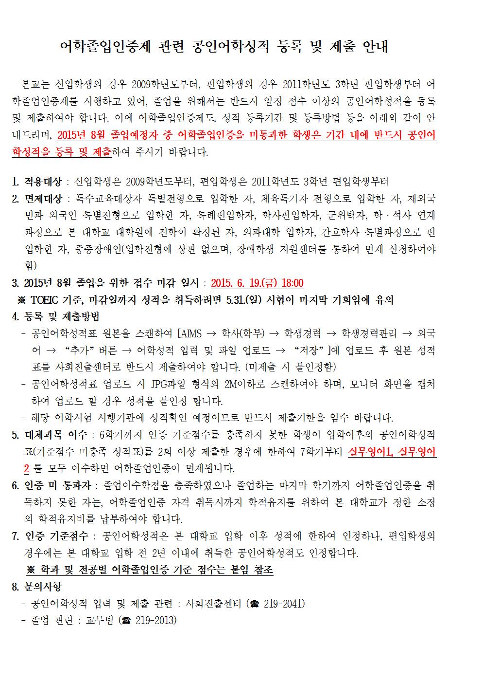 2014학년도 후기(2015.08) 졸업예정자 졸업관련 안내