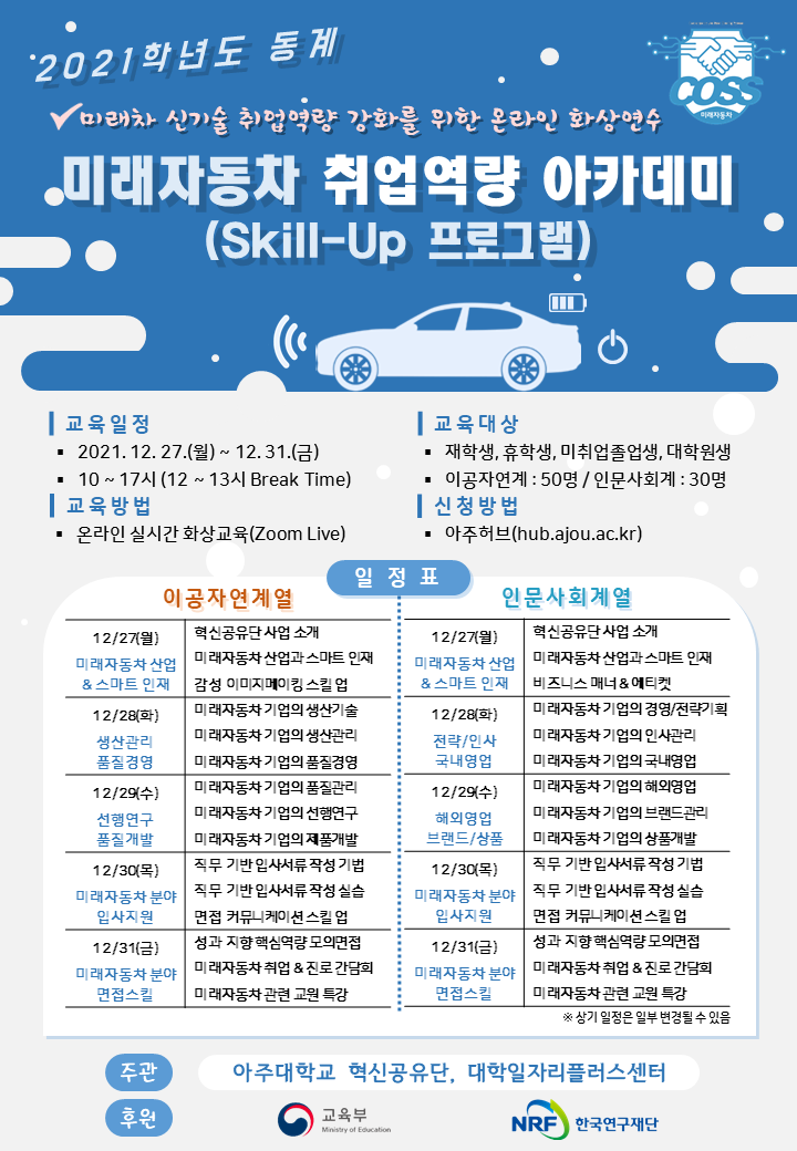 2021학년도 동계 미래자동차 취업역량 아카데미(Skill_UP) 프로그램 안내