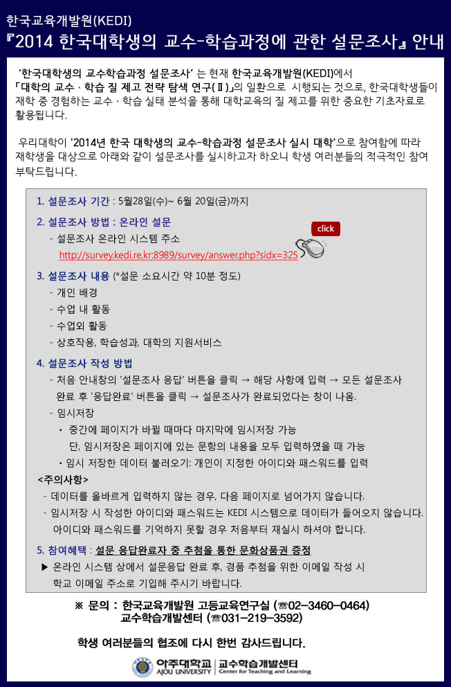 2014 한국 대학생의 교수,학습과정에 관한 설문조사 참여 안내